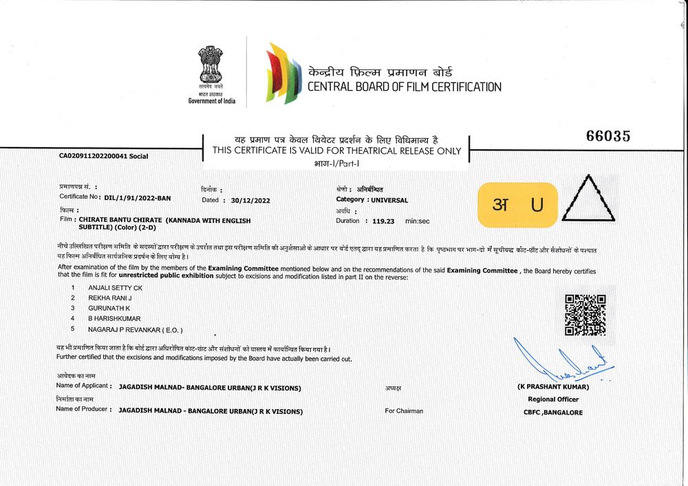Crew: CR Krishnamurthy (Director), Paramesh CM (Director of Photography), Manasa Holla (Music Director)
