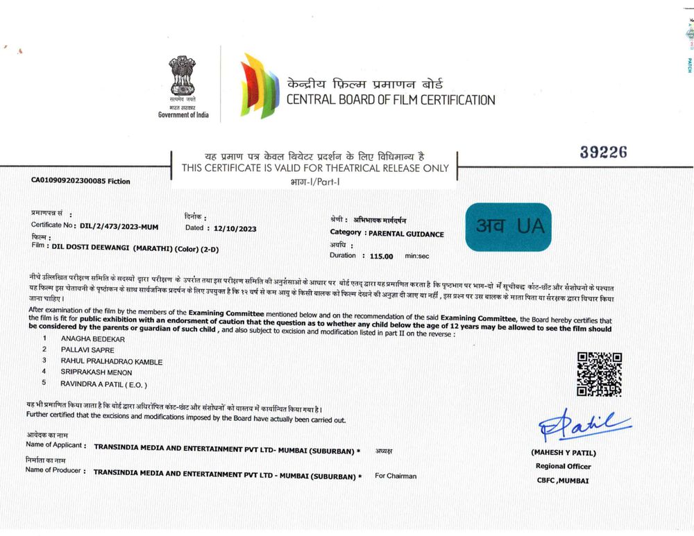 Crew: Shirish Rane (Director), Dhananjay Kulkarni (Director of Photography), Shubhankar Banerjee SRB (Music Director)