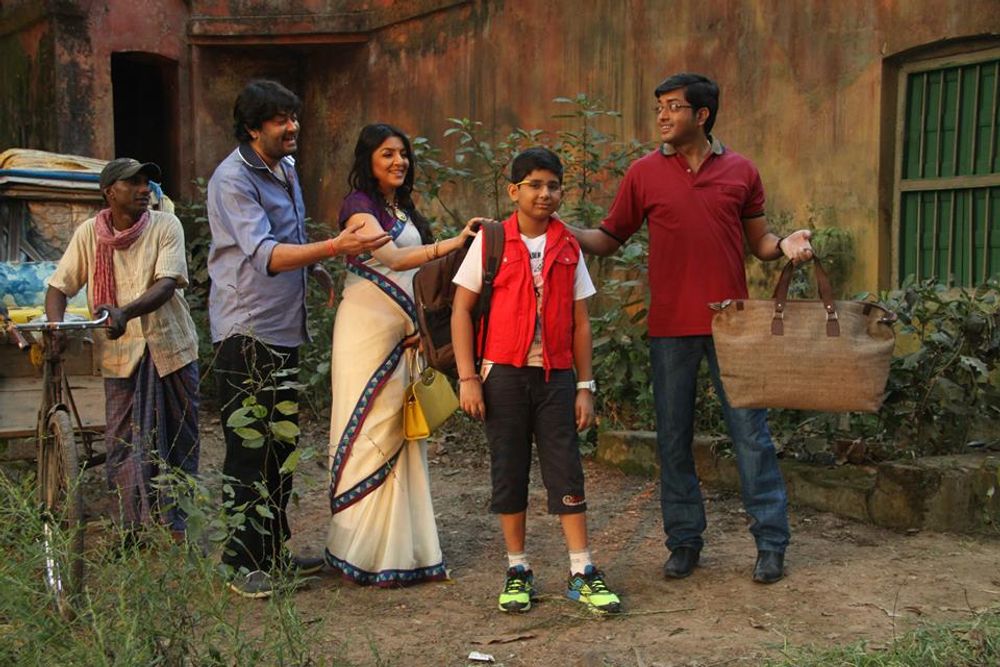 This film unfolds with a 'sabeki' puja in a Bengal village, where all members of the once-royal household assemble during that time of year and Gogol will take us back to the time when joint households were in vogue. Gogol is in a way the younger version of Feluda who is gadget savvy, knows mob applications, has contemporary tastes and upbringing but still loves to be in a joint family and calls its members 'pisi-na kaka-didibhai-chhotomama etc. He never uses a tab but sharpens his 'magojastro'.