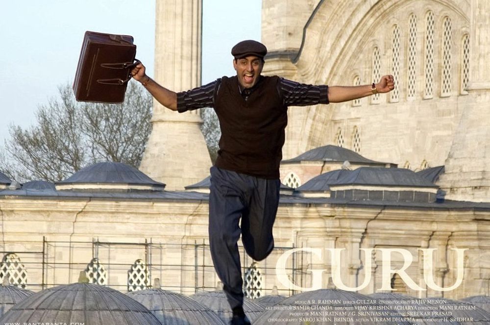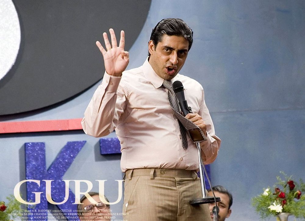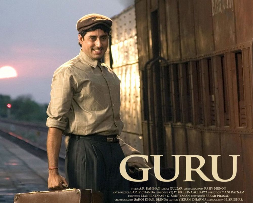 The start of the film is set in 1951. In a small village of Idar in Sabarkantha district, northern Gujarat, a young man named Gurukant "Guru" Desai (Abhishek Bachchan) dreams of making it big some day. His father (Rajendra Gupta), the headmaster of the village school, tells him that dreams never come true. Gurukant decides to go to Turkey and enter the spice trade; later, he is promoted but refuses the job because he wants to work for himself.
