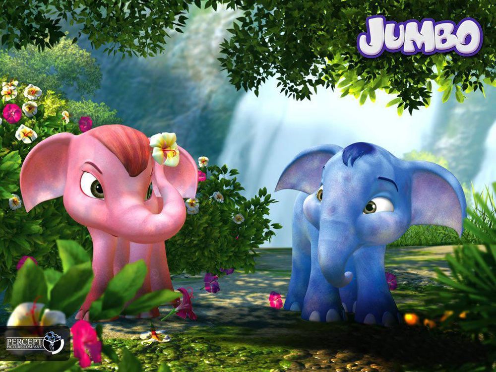 Jumbo is a small blue elephant (voiced by Akshay Kumar) who grows up with his mother (voiced by Dimple Kapadia). His mother never reveals any details of his father and neither do the rest of the elephants in the herd. He is a happy go lucky elephant, who loves to play with the other animals of the jungle. Occasionally he would be confronted by the other elephants of the herd, who would bully him on the history of his father. Tired of being teased about his father's cowardice in some war, he confronts his mom again who somehow manages to rubbish the topic. One night he comes to know that a large army has come to the jungle, and they plan an overnight stay. In the hope of finding his father, Jumbo sets out to the camp, and manages to locate a tent that houses the royal elephant of that army. He goes in and politely asks the royal elephant about his father. All of a sudden the royal elephant turns very violent and Jumbo starts running for cover. In the meanwhile the soldiers standing outside see Jumbo running out of the tent and try to capture it. Jumbo manages to go in to the tent of prince Vikramaditya. Vikramaditya then saves Jumbo from the soldiers. It is then revealed that Vikramaditya is the prince of a captured kingdom and is a POW. After running away from the camp Jumbo realizes that he is separated from his mother and is lost in the jungle. He wanders in the jungle for a while where he meets Sonia (voiced by Lara Dutta) a cute pink elephant. He meets some villagers and a wise old Mahout who is the guardian of Sonia. They teach him the art of war and also make him strong and confident. He grows up to be a well built and strong war elephant.