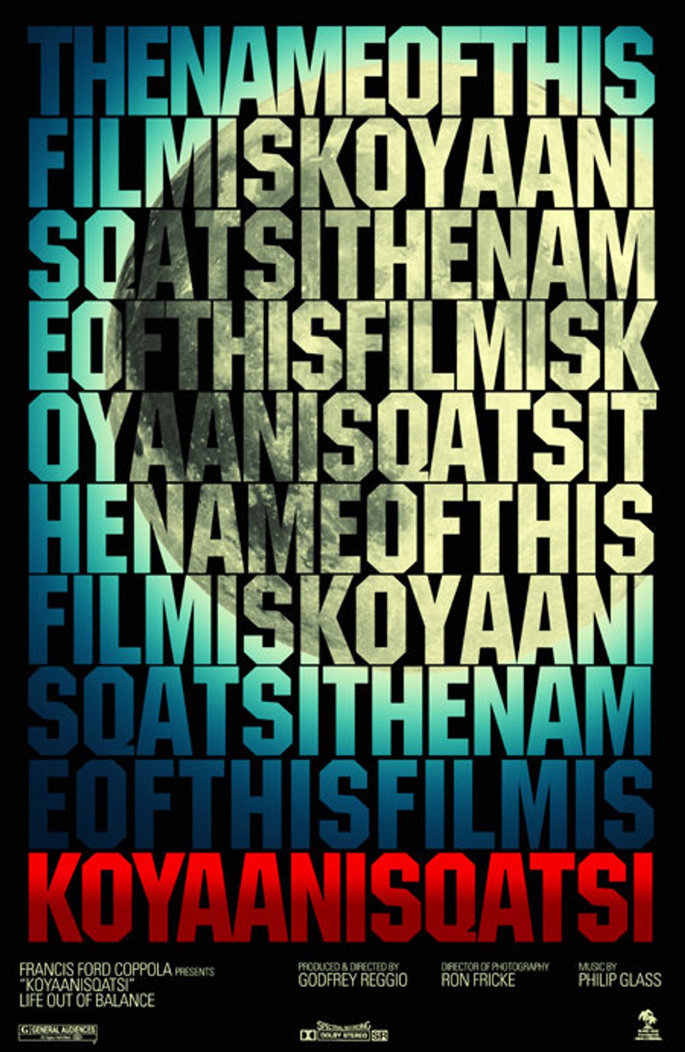 Crew: Godfrey Reggio (Director), Ron Fricke (Director of Photography), Philip Glass (Music Director)
