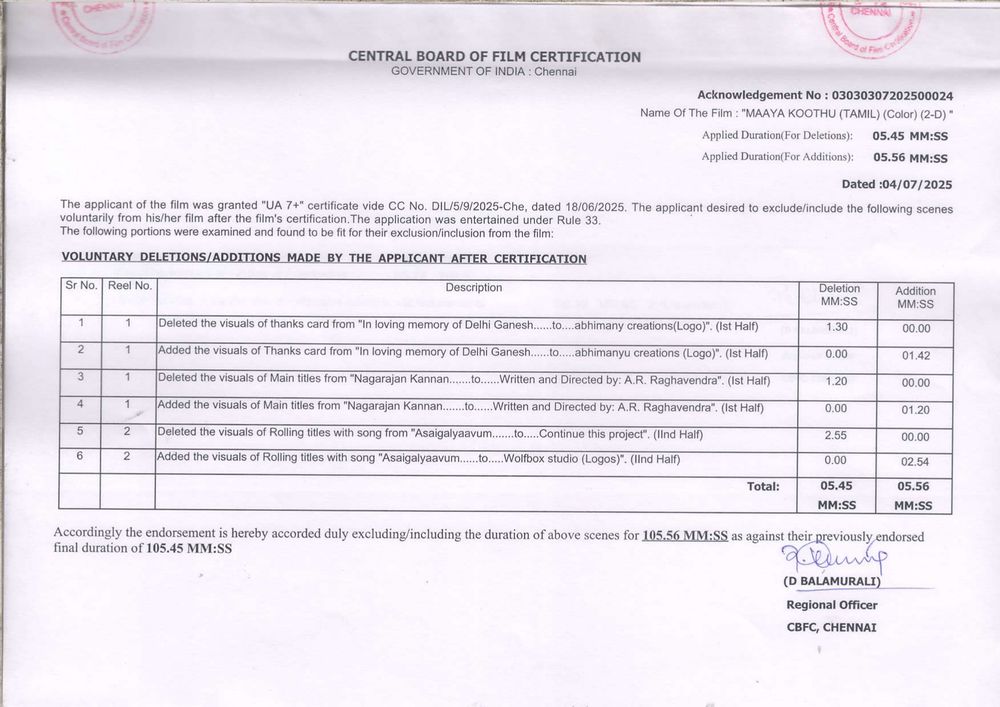 Crew: AR Raghavendra (Director), Sundar Ram Krishnan (Director of Photography), Anjana Rajagopalan (Music Director)