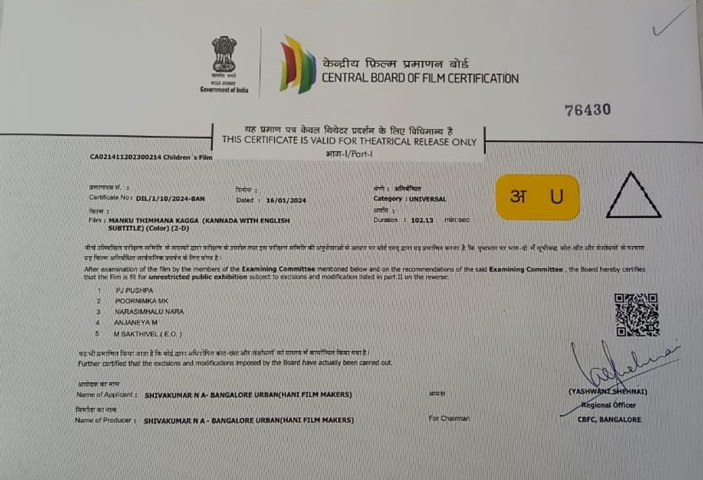 Rating: U (India)