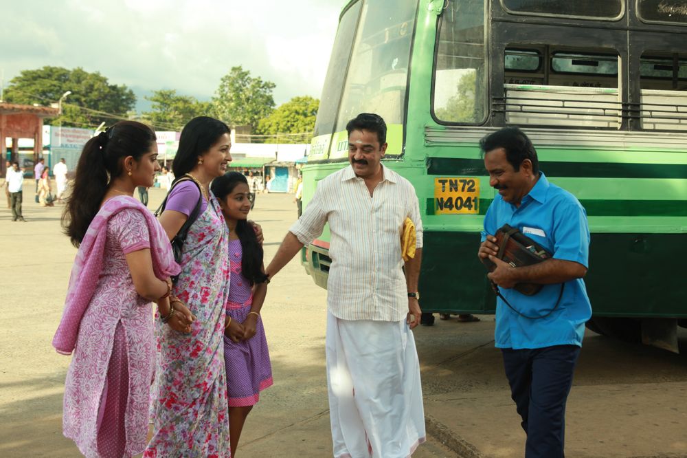 The trailer had this 'family-oriented vibe' to the proceedings, something Kamal had not done in a while. A nice change of pace as well. The movie starts slowly, and soon I realized how 'Earthed' the movie was; the characters had this positive vibe and the direction was always on-the-dot for exposing character traits early on. It took its time and it was handled really well without ever being boring.