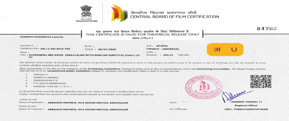 18 Jul 2025 ● Malayalam ● 1 hr 43 mins