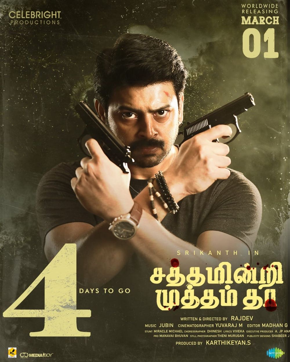 Crew: Rajdev (Director), Yuvaraj M (Director of Photography), Jubin (Music Director)