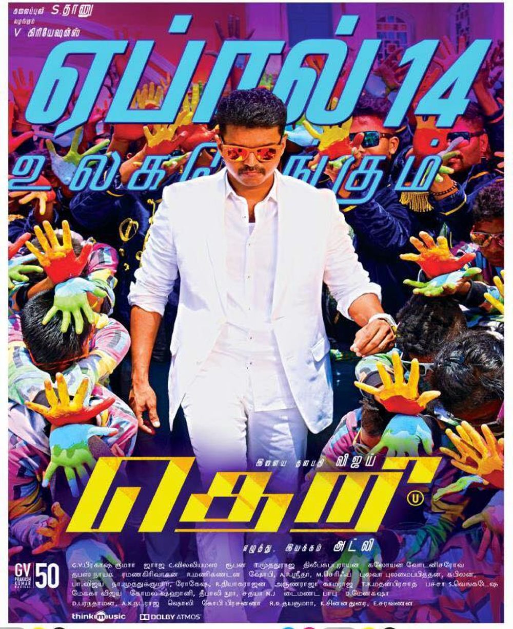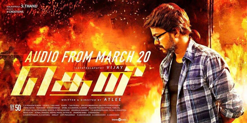 Crew: Atlee Kumar (Director), George C Williams (Director of Photography), GV Prakash Kumar (Music Director), Tapas Nayak (Audiographer)