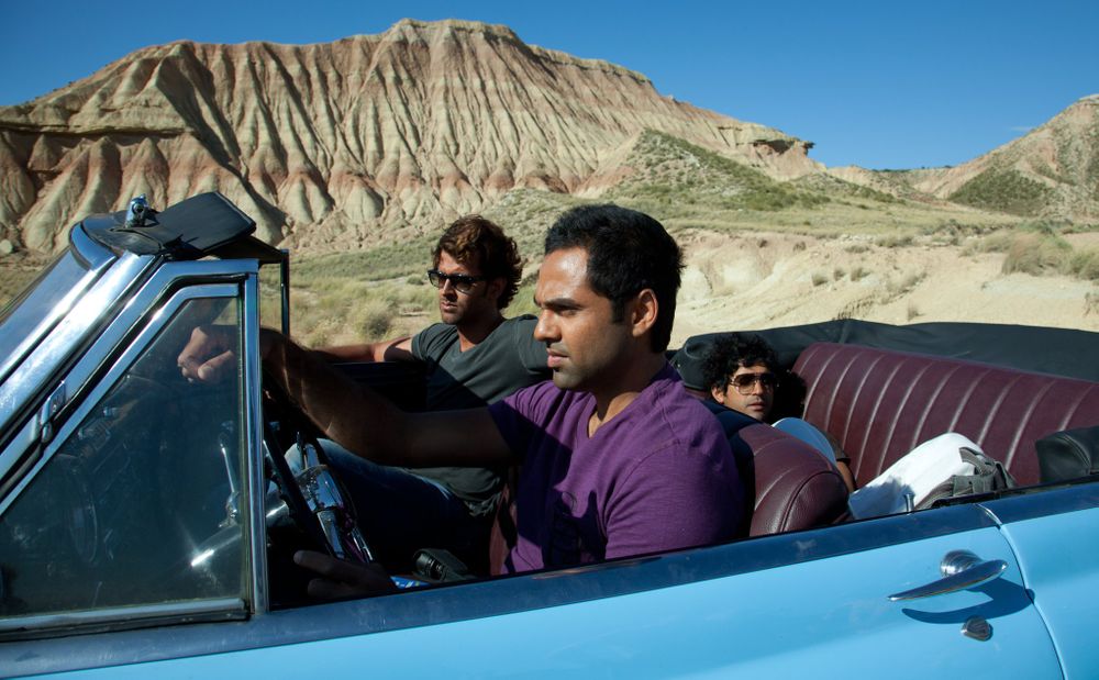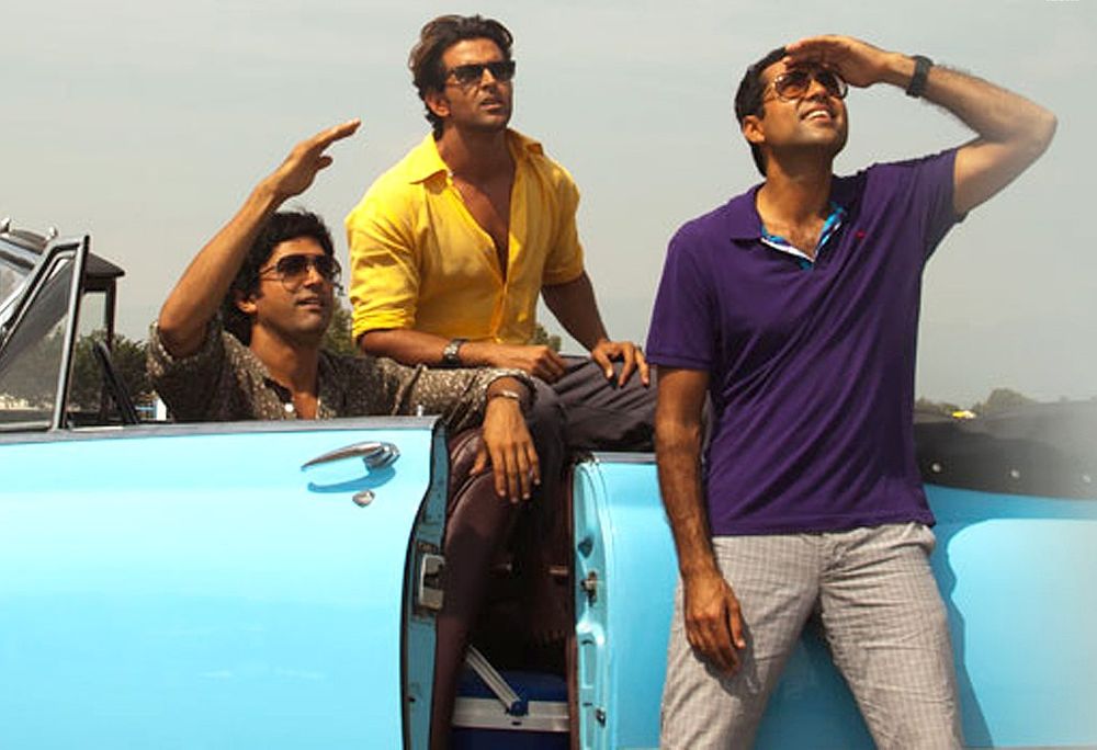 This contemporary coming-of-age relationship drama sparks off with Kabir (Abhay Deol) proposing to Natasha (Kalki Koechlin). Their families meet at the engagement party where Natasha learns that Kabir is planning a three-week bachelor road trip to Spain with his school friends Imran (Farhan Akhtar) and Arjun (Hrithik Roshan). Kabir explains that the three have a long-standing pact, and that during the road trip, each of them will have to pick an adventure sport which all three will try together.