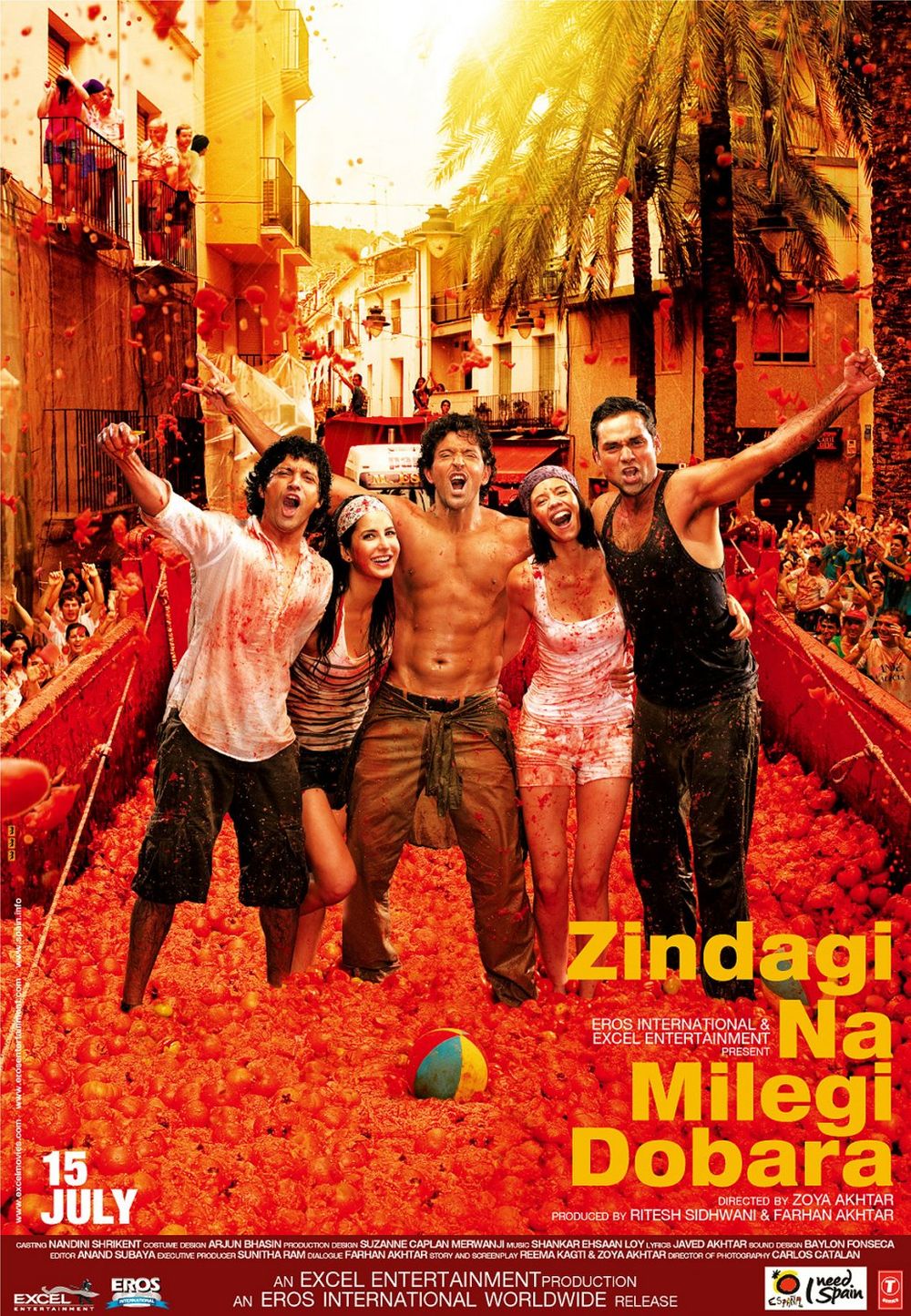 Upon a request by Laila, they attend the La Tomatina festival with her in Buñol and meet Nuria (Ariadna Cabrol), who falls in love with Imraan. Meanwhile, Natasha becomes suspicious of Kabir's involvement with Laila when she sees them via webcam and crashes his bachelor party trip, much to Kabir's discomfort in front of his friends. Imran spends time with Nuria, and Arjun with Laila. After the boys leave, Laila realises she has fallen in love with Arjun and chases them on a bike, not wanting to regret their partition if they do not meet in future. She and Arjun express their feelings for each other with a passionate kiss.